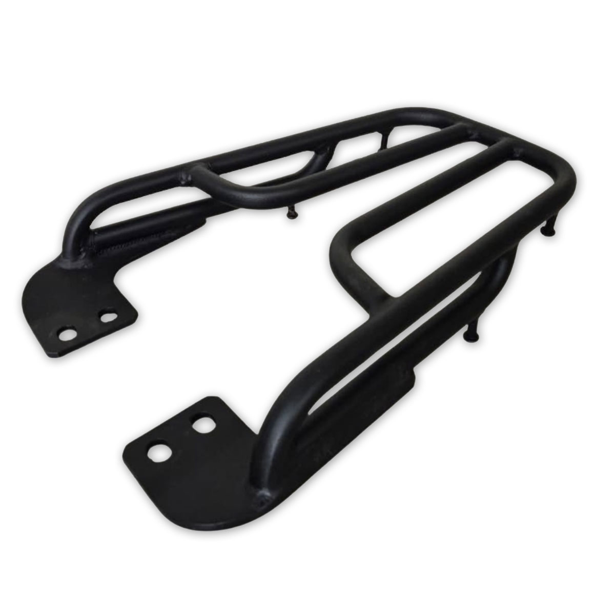 Bagageiro reforçado desenvolvido em aço carbono para suporte de bauleto com afastamento do banco para conforto do passageiro.